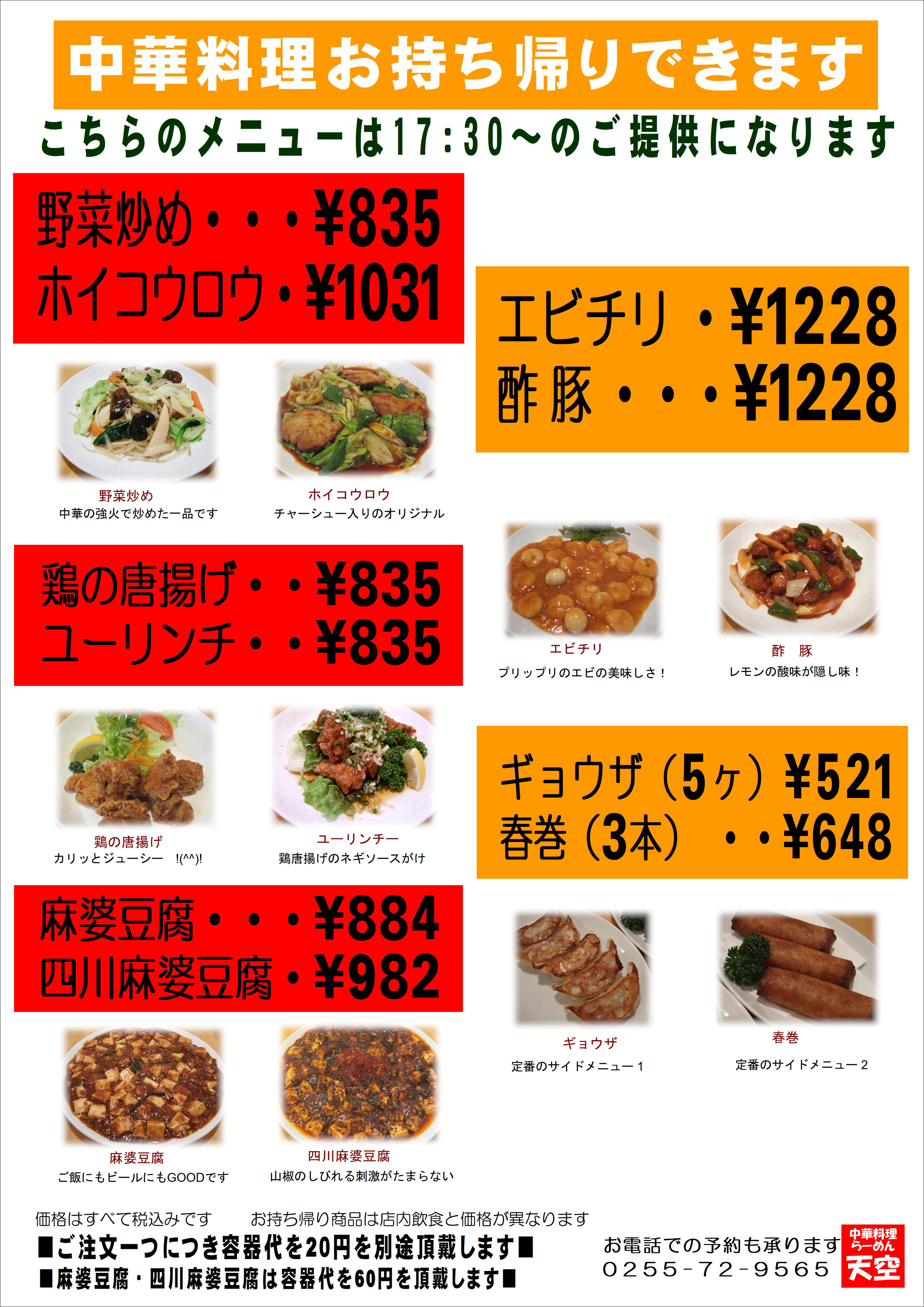 ディナータイム(17:30~)は、お料理各種のテイクアウトもできます。